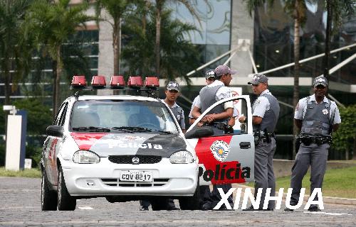 11月7日,在巴西圣保羅,幾名警察在20國集團財政部長和中央銀行行長會議舉辦地點戒備。20國集團財長和央行行長會議于7日至9日在圣保羅舉行。新華社記者張傳奇攝