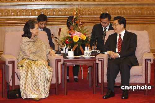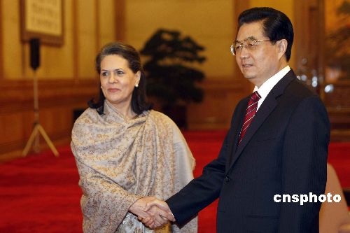 胡錦濤會見印度國大黨主席索尼婭·甘地