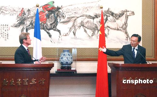 楊潔篪與法國外長庫什內(nèi)舉行會談并共同會見記者