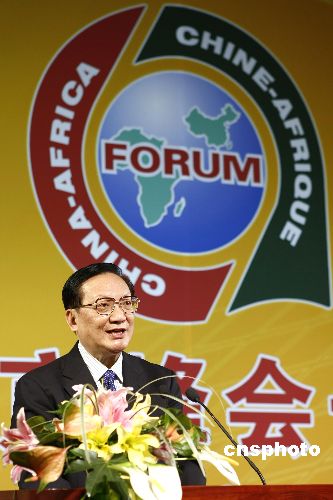 十一月四日,中非合作論壇北京峰會(huì)一周年紀(jì)念招待會(huì)在北京釣魚臺(tái)國(guó)賓館舉行,國(guó)務(wù)委員唐家璇出席招待會(huì)并發(fā)表講話。中新社發(fā) 盛佳鵬 攝