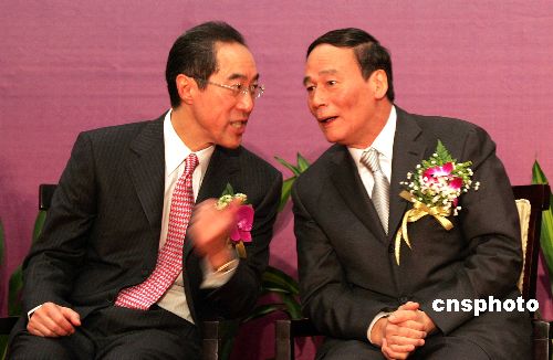11月5日,第11屆北京·香港經濟合作研討洽談會在北京舉行。北京市市長王岐山與香港政務司司長唐英年出席開幕式。中新社發 張宇 攝