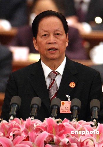 圖:肖揚(yáng)在全國人大第三次全體會(huì)作高法工作報(bào)告
