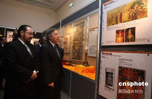 5月15日,“西藏今昔——大型主題展”外國駐華使節專場在北京民族文化宮舉行。圖為外國駐華使節正在參觀西藏歷史與封建農奴制展區。中新社發 張勤 攝
