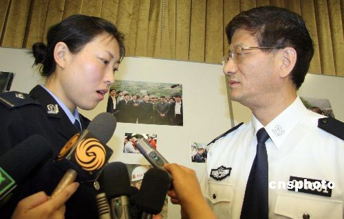 5月19日,中國國務委員、公安部部長孟建柱在北京向被稱為地震災區(qū)“最堅強女性”的四川省彭州市公安局民警蔣敏表示慰問。在此次汶川特大地震災害中,蔣敏在北川縣城老家的爺爺奶奶、母親、剛滿兩歲的女兒等近十位親人不幸罹難,但她依然連續(xù)奮戰(zhàn)在抗震救災一線。蔣敏事跡經官方媒體報道后,被民間稱為“最堅強女性”、“最堅強母親”,網友則親切稱她為“最堅強警花”。中新社發(fā) 孫自法 攝