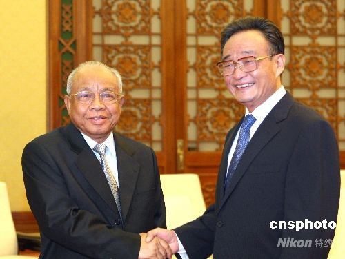 圖:吳邦國會見柬埔寨參議院主席謝辛