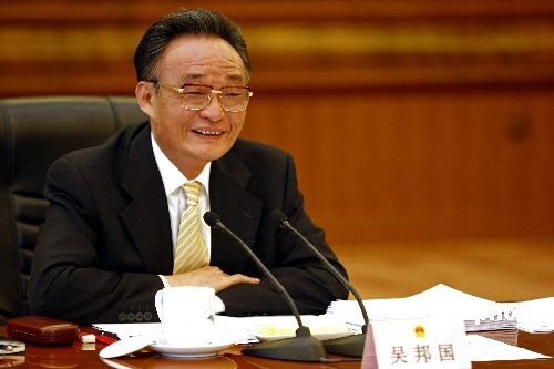 吳邦國(guó)主持十一屆全國(guó)人大常委會(huì)第十一次委員長(zhǎng)會(huì)議。