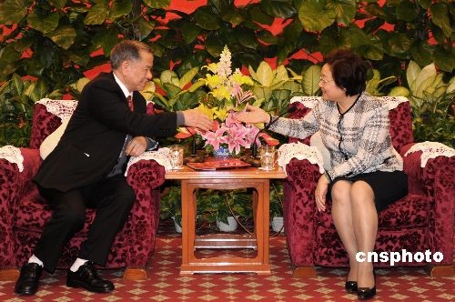 十一月十八日,中國國務院僑務辦公室主任李海峰在北京釣魚臺國賓館會見以陳永栽為團長的菲華商聯總會中國訪問團一行。中新社發 廖攀 攝
