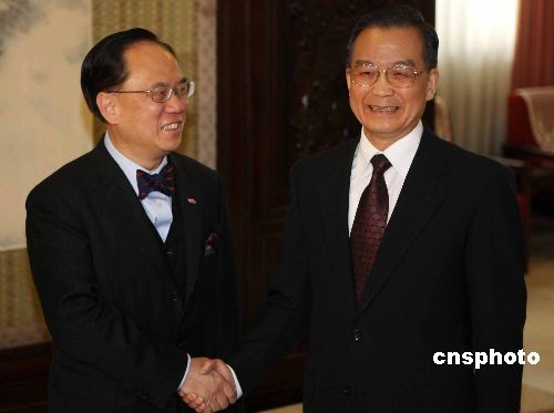 12月19日上午,國務院總理溫家寶在北京中南海紫光閣會見前來北京述職的香港特別行政區行政長官曾蔭權。中新社發 任晨鳴 攝