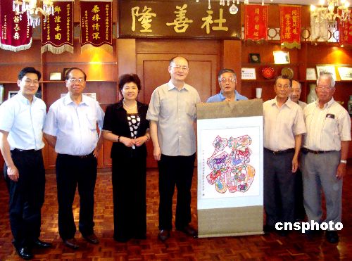 當(dāng)?shù)貢r(shí)間2月2日,率領(lǐng)“文化中國(guó) 四海同春”藝術(shù)團(tuán)一行訪問(wèn)南美的國(guó)務(wù)院僑辦副主任、中國(guó)海外交流協(xié)會(huì)副會(huì)長(zhǎng)趙陽(yáng),在秘魯首都利馬走訪僑社,了解僑情,參觀了具有一百多年歷史的中山隆鎮(zhèn)隆善社和同升會(huì)館。圖為趙陽(yáng)向秘魯中山隆鎮(zhèn)隆善社贈(zèng)送禮品。中新社發(fā) 劉以謙
