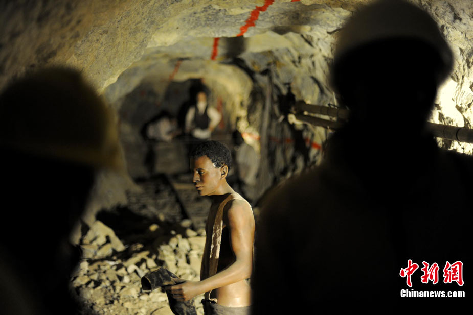 南非的金礦主要分布在奧蘭治河的支流瓦爾河流域,大體成一半圓形,延伸500公里,素有“金弧”之稱,而礦區主體便是以約翰內斯堡為中心,向東西延伸。 2010世界杯主賽場——約翰內斯堡足球城球場便建在一片金礦之中,被當地人形容為“被金礦包圍的球場”。近日,金礦試驗新型炸藥,爆炸聲傳到足球城球場,還引起全世界媒體的虛驚一場。 在約翰內斯堡“皇冠金礦”舊址上建起的主題公園“黃金城”中,游客在這里可以看到,18世紀末淘金熱潮時礦場附近造幣廠、餐廳、診所的舊模樣。“皇冠金礦”因為礦石含金量日趨下降,于1977年正式停產。中新社發 廖攀 攝