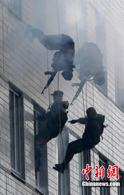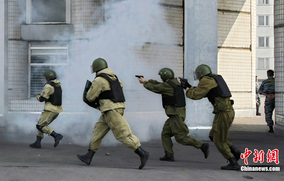 當地時間7月28日,俄羅斯特別部隊(內務部特種部隊)士兵在莫斯科郊區公開展示了其訓練成果和戰斗技能。