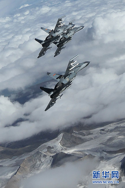 7月6日,戰(zhàn)機(jī)在青藏高原上空飛行。今年3月以來,成都軍區(qū)空軍某部在西藏進(jìn)行第三代戰(zhàn)機(jī)攜實(shí)彈高原訓(xùn)練,組織戰(zhàn)機(jī)進(jìn)行高原條件下的復(fù)雜氣象飛行、戰(zhàn)術(shù)戰(zhàn)法探索飛行以及極限性能檢測飛行等訓(xùn)練。劉應(yīng)華 攝