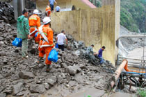 8月14日凌晨,連續強降雨引發汶川境內映秀鎮、漩口鎮、銀杏鄉、三江鄉等鄉鎮發生多處泥石流災害。其中銀杏鄉境內泥石流塌方量高達6萬立方米,流經該鄉的岷江也因泥石流阻斷,正在形成堰塞湖;映秀鎮板房醫院被泥石流沖毀。中新社發 薛升玉 攝