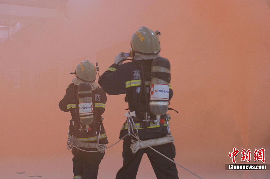 8月19日,福建省寧德市公安消防支隊在寧德會展中心舉行大跨度大空間建筑滅火救援演練,來自基層消防中隊的近30名指揮骨干現(xiàn)場觀摩了演練。演練中,56名參演官兵展示了火場偵察、救生、警戒、破拆、排煙、滅火等11個滅火救援項目,提高了部隊處置建筑物火災事故的應急攻堅能力。唐海波 攝