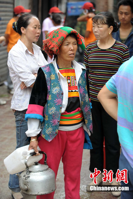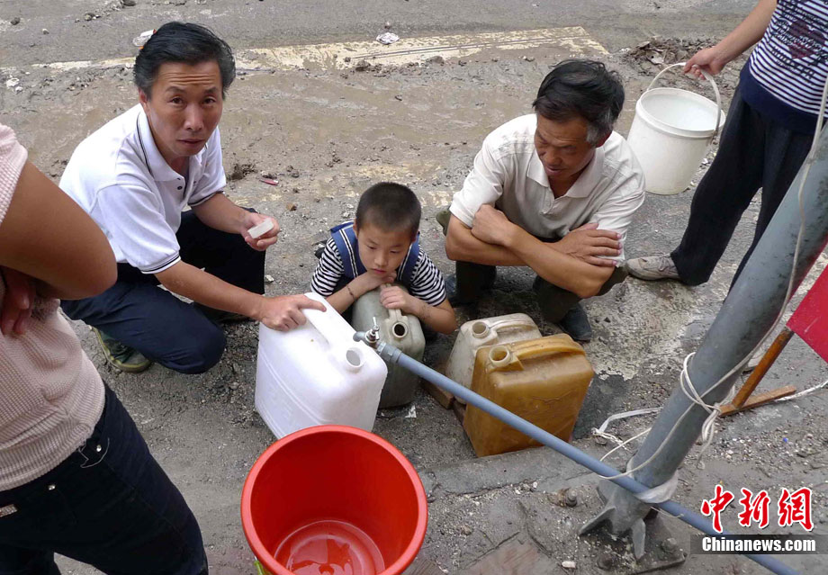 8月21日,舟曲特大山洪泥石流14天之后,舟曲縣城仍然為水所“困”:部分城市建設施仍然浸泡在水中,供排水系統嚴重受損。同時,雖然當地6萬人的基本飲水已經得到了解決,但生活用水仍存在較大缺口。中新社記者 侯志紅 攝