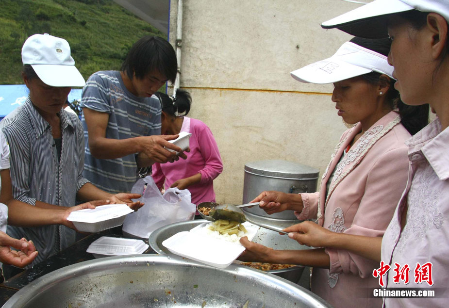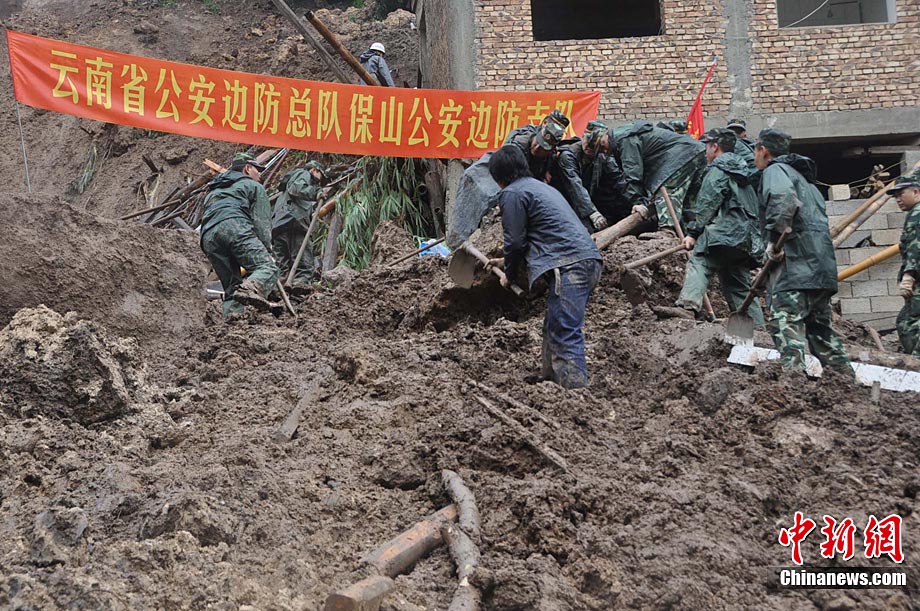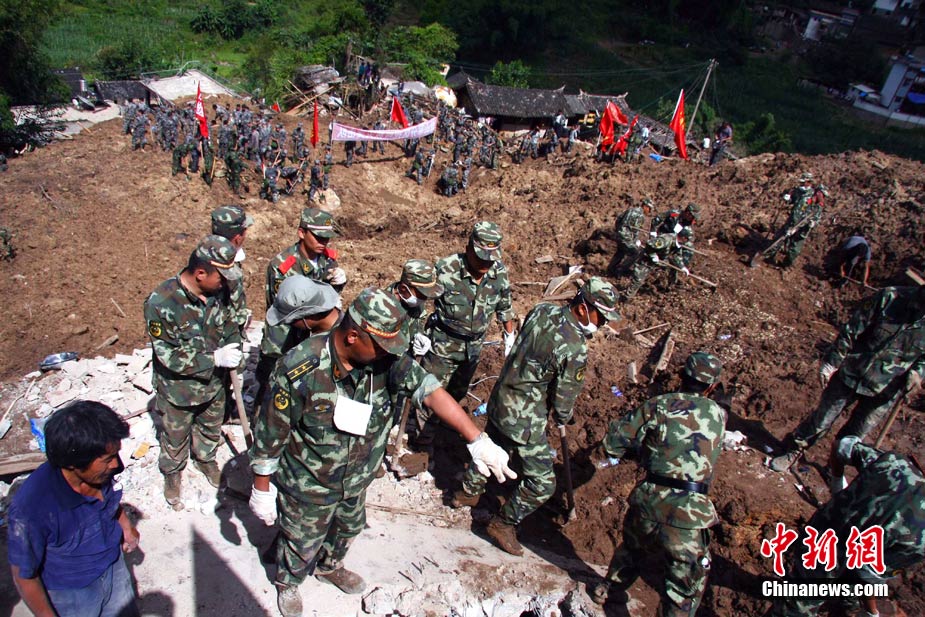 截止2010年9月3日上午8時,云南省保山隆陽區(qū)瓦馬鄉(xiāng)河?xùn)|村大石房村民小組的特大地質(zhì)災(zāi)害已致15人死亡,33人失蹤。據(jù)參與救援的武警某中隊中隊長介紹,他們中隊參加救援的150多人當中80%都是“90”后,最小的只有17歲,并且在兩天的救援工作中就搜救出了2名遇難者。圖為救援官兵午間休息。中新社發(fā) 任東 攝