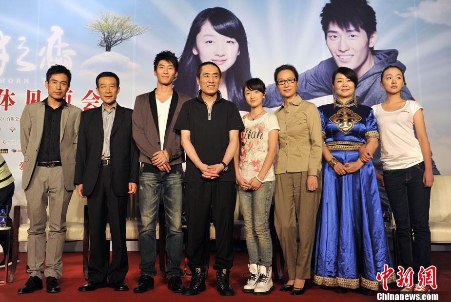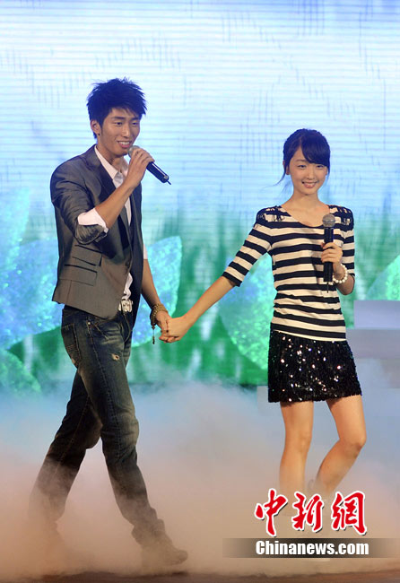 9月12日,張藝謀新片《山楂樹之戀》在京舉行首映式,導(dǎo)演張藝謀攜主演周冬雨、竇驍、奚美娟、李雪健、成泰燊、薩日娜等全陣容出席首映式。圖為男女主角竇驍、周冬雨牽手出場。中新社記者 李學(xué)仕 攝