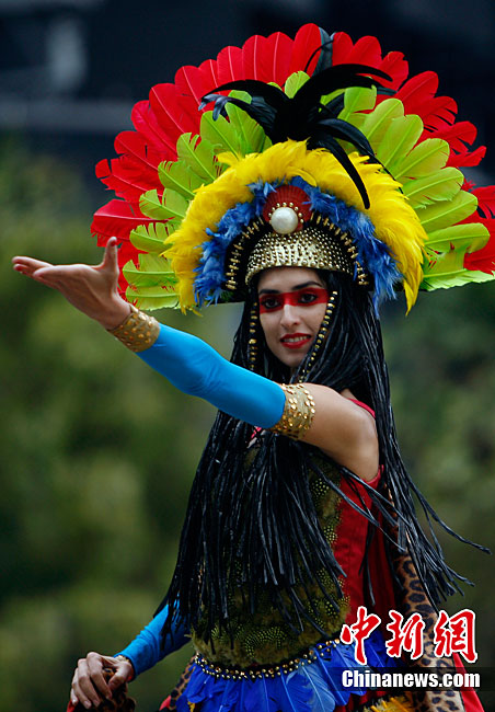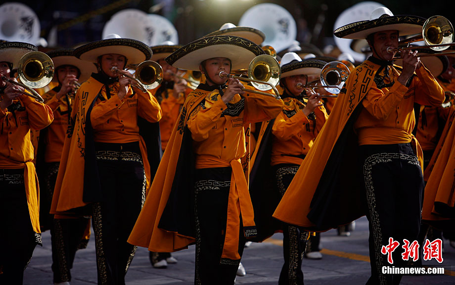 當地時間9月15日,墨西哥首都墨西哥城的廣場上舉行了紀念獨立200周年慶;顒娱_幕式表演。