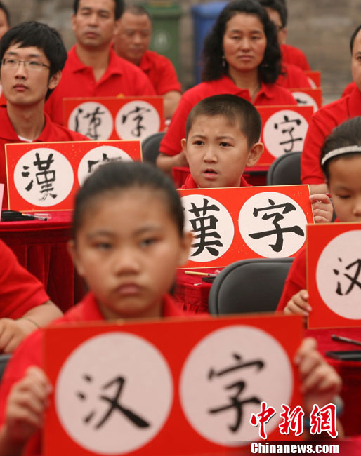9月16日,北京兩百名書(shū)法愛(ài)好者在太廟前書(shū)寫(xiě)各種字體的漢字,并共同完成“提筆、蘸墨、落筆、展卷”傳統(tǒng)程序。當(dāng)日,首屆“兩岸漢字藝術(shù)節(jié)”在北京太廟開(kāi)幕。本次藝術(shù)節(jié)由中國(guó)藝術(shù)研究院、中華文化聯(lián)誼會(huì)、臺(tái)灣文化總會(huì)、河南省安陽(yáng)市政府聯(lián)合主辦,中國(guó)藝術(shù)研究推廣中心、臺(tái)灣中華新文化發(fā)展協(xié)會(huì)共同承辦。中新社發(fā) 蘇丹 攝