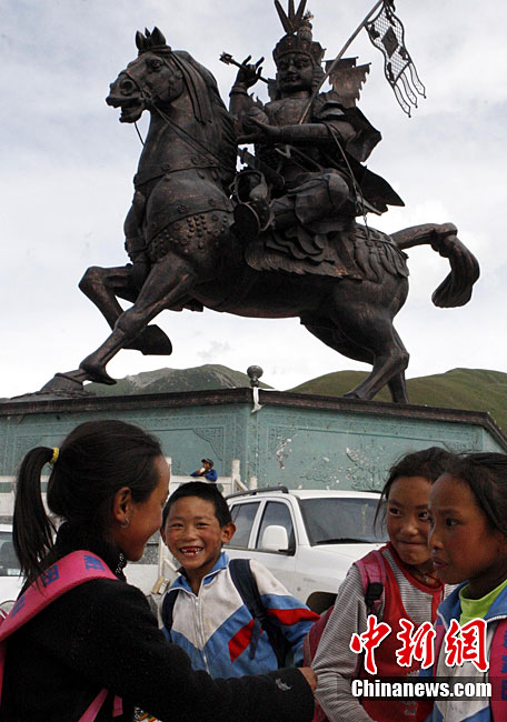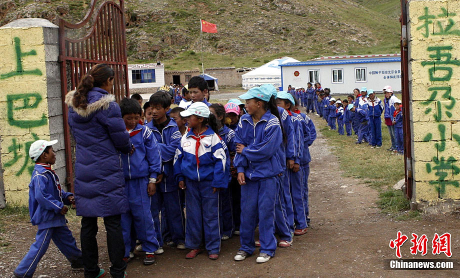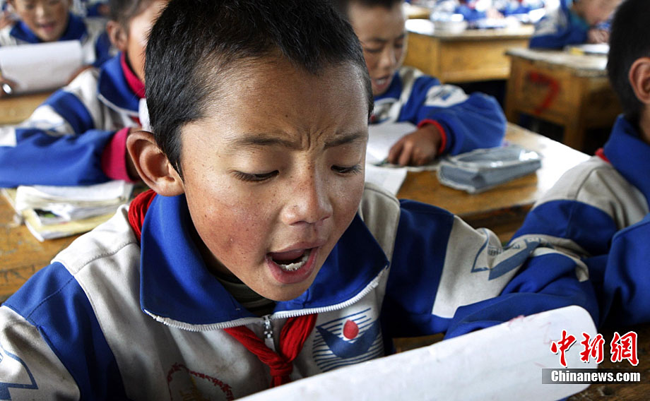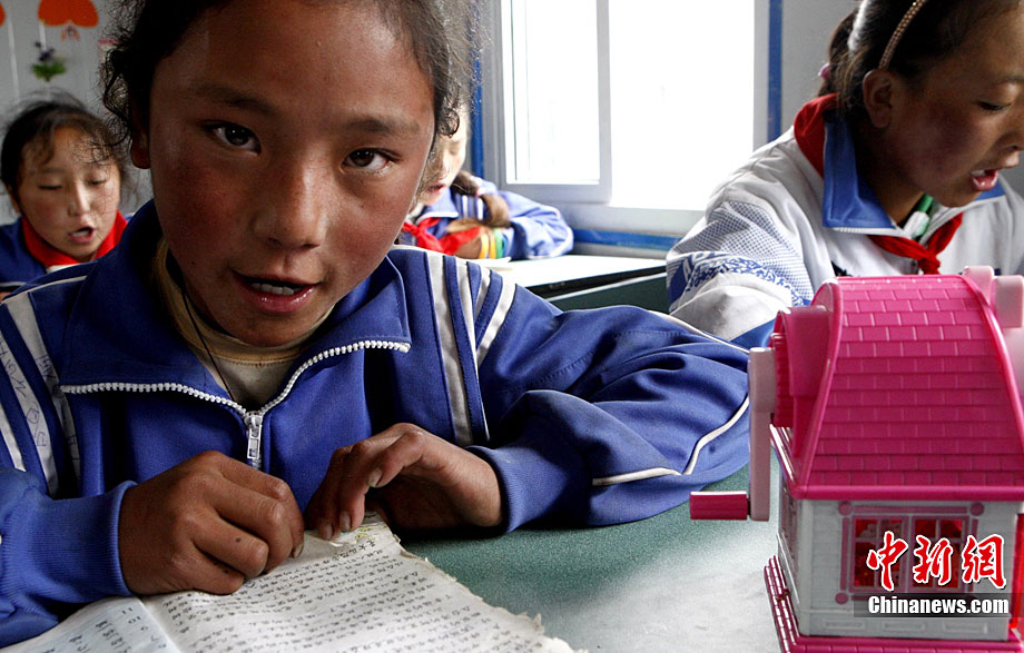 時(shí)逢中秋佳節(jié)到來(lái)之際,經(jīng)歷了地震5個(gè)月后的中國(guó)青海玉樹(shù)災(zāi)區(qū)正在加緊重建家園。如今,玉樹(shù)街頭臨時(shí)搭建的貨店及百貨商店里各種日用品琳瑯滿目,菜市場(chǎng)新鮮的蔬菜和水果供應(yīng)充足,幾家重新開(kāi)業(yè)的飯館生意興隆。圖為在當(dāng)?shù)匦W(xué),學(xué)生們?cè)谥亟ǖ慕淌依锷险n。中新社記者 錢興強(qiáng) 攝