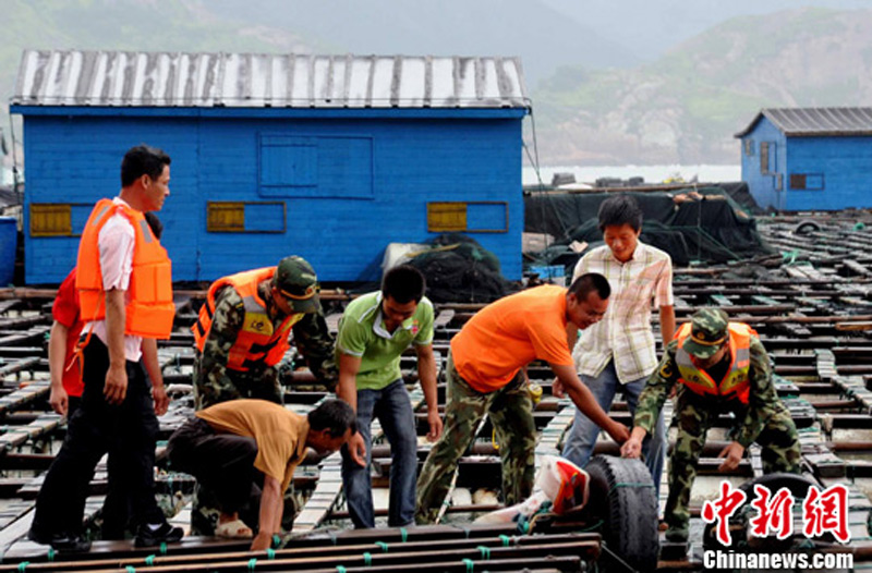 9月20日7時,今年第11號臺風“凡亞比”在福建省漳浦縣沿海登陸。 圖為9月19日,福建省連江縣海上養殖人員在轉移上岸。為防抗今年第11號超強臺風“凡亞比”來襲,福建省連日來展開人員梯次轉移。據福建省防汛辦統計,截至9月19日12時,福建全省共轉移海上作業人員18萬人,其中近3.1萬漁排作業人員和14.95萬漁船作業人員已全部安全轉移上岸,出海作業的5.5萬艘漁船也已全部進港避風。張國俊攝 圖片來源:新華網