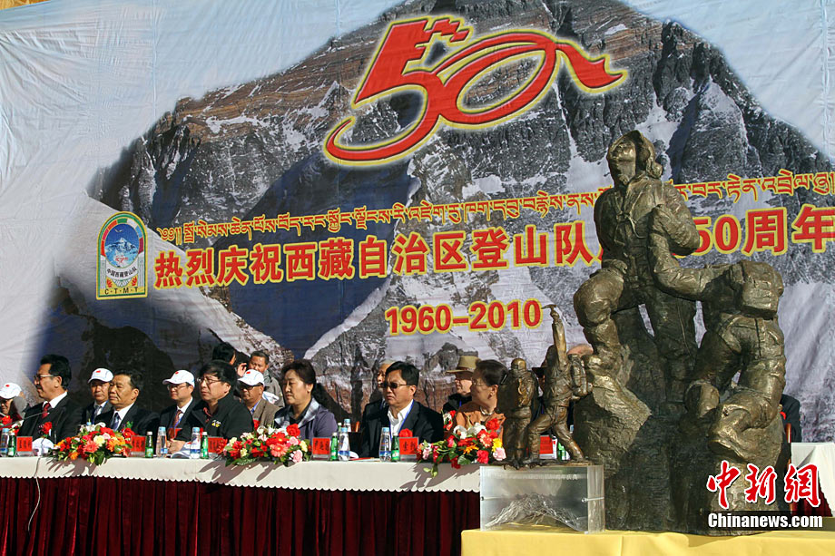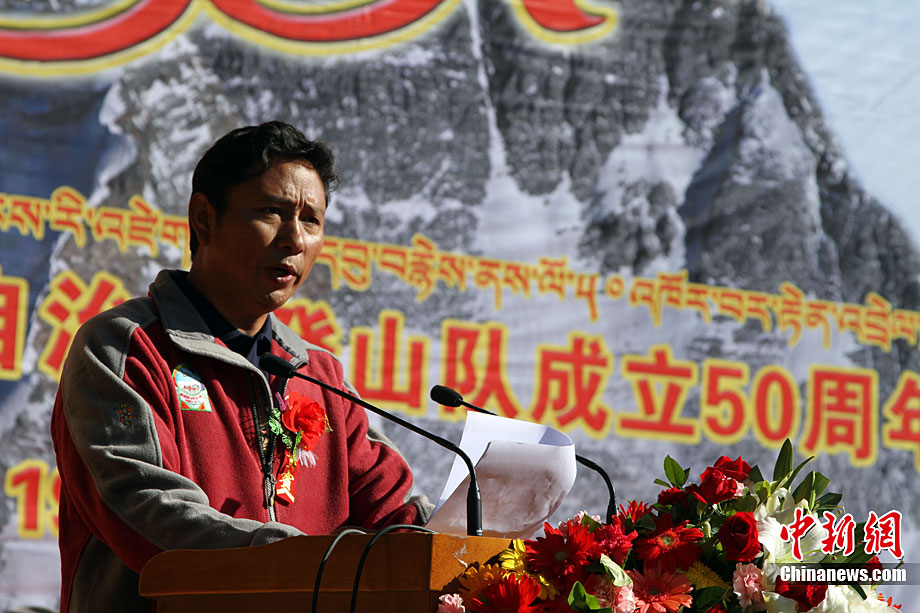 西藏自治區登山隊28日上午在拉薩舉行該隊成立50周年慶典。西藏自治區登山隊成立于1960年10月1日,是中國目前唯一齊裝滿員的專業登山運動隊。建隊50年來,先后有藏漢族登山運動員80多人登上世界第一高峰——珠穆朗瑪峰,280人次登上8000米以上高度。徐長安 攝