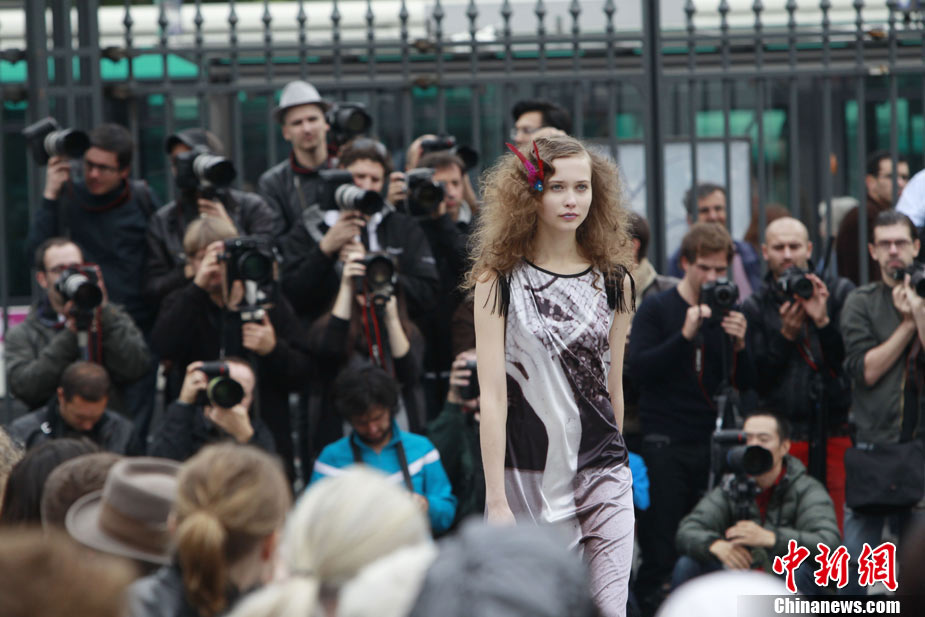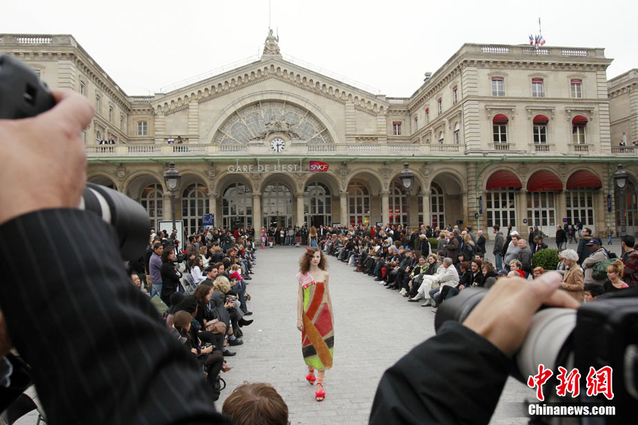 9月28日,法國巴黎,眾靚模在巴黎火車站(Gare de L’est )上演了一場另類走秀。