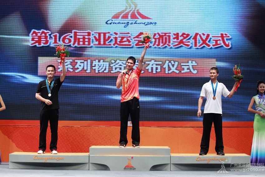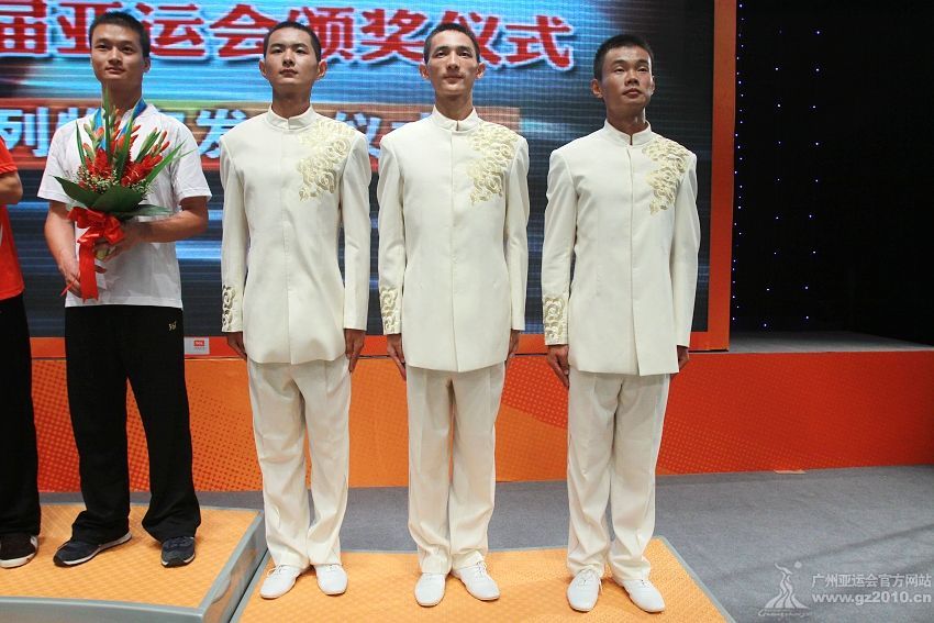 9月29日下午,第16屆亞運會頒獎儀式系列物資發布儀式在廣州市二少年宮舉行。圖為頒獎禮儀。圖片來源:廣州亞運會官網
