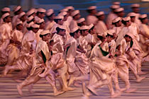 中新網大足10月4日電 (連肖 杜遠)4日下午,重慶大足首屆國際航空體育旅游節開幕,空軍“八一”跳傘隊和英國兩支特技飛行隊在大足龍水湖上空上演了多項空中特技。其中,兩名英國女郎站在時速高達240公里的飛機機翼上表演各種芭蕾動作,引得觀眾大呼驚險。連肖 攝