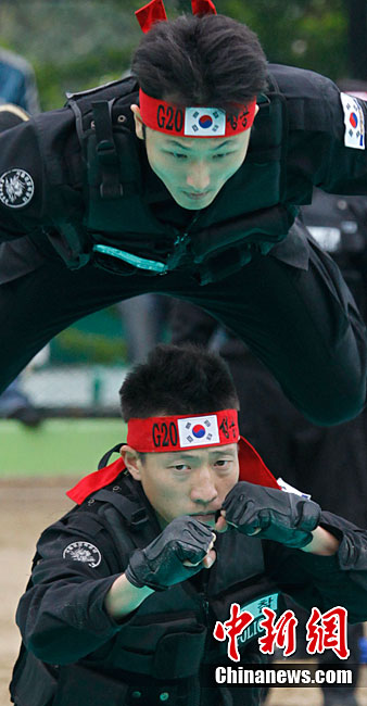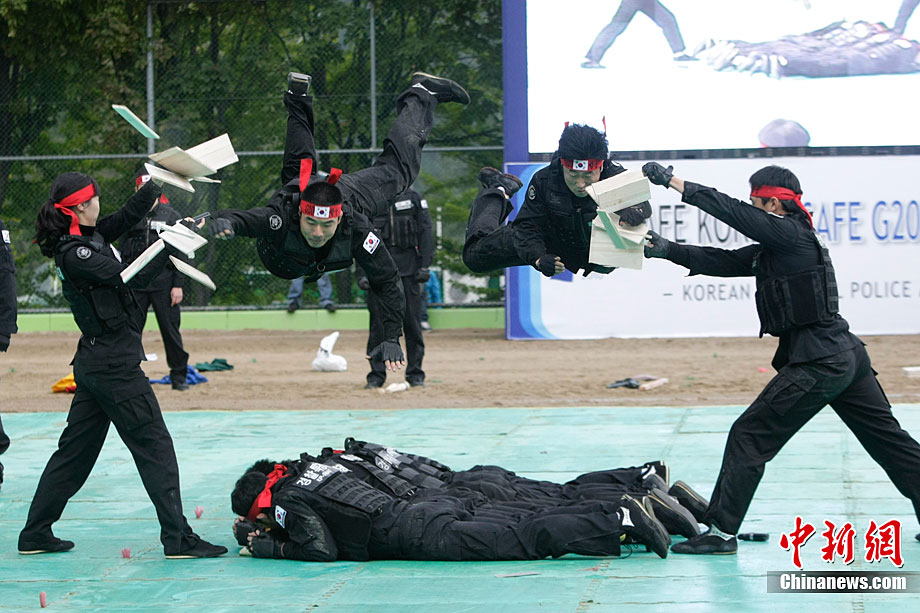 當(dāng)?shù)貢r(shí)間10月4日,韓國(guó)特警在首爾舉行了反恐演習(xí)。此次演習(xí)是為了即將于11月在韓國(guó)舉行的G20首腦峰會(huì)而做的準(zhǔn)備工作。