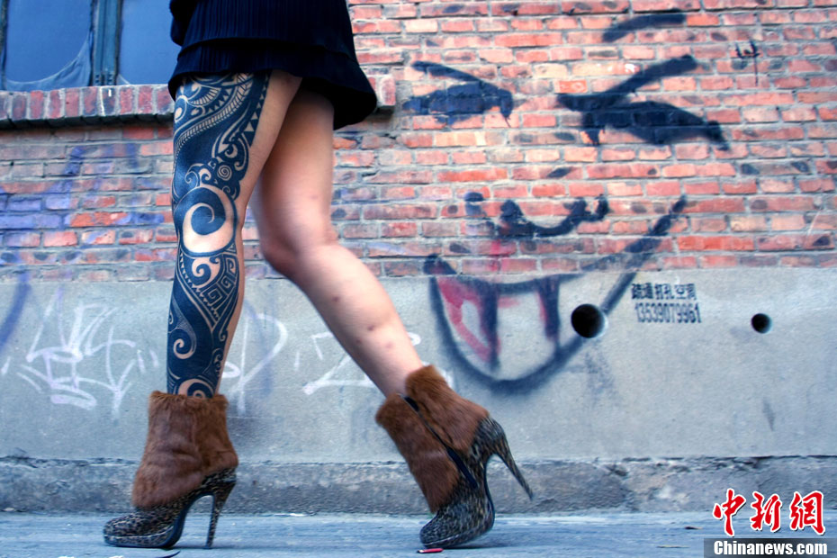 10月15日,中國(國際)紋身藝術節在北京798藝術區開幕,這是國內舉辦的首次國際性紋身藝術節。本屆紋身展會的宗旨是:“讓藝術向紋身靠攏”,為國內外紋身師提供一個公平、公正的同臺獻藝和交流的平臺。來自美國、澳大利亞、新西蘭等國以及中國許多省市的紋身師現場展示富有個性、創意十足的紋身作品。藝術節將持續至17日。 中新社發 富田 攝