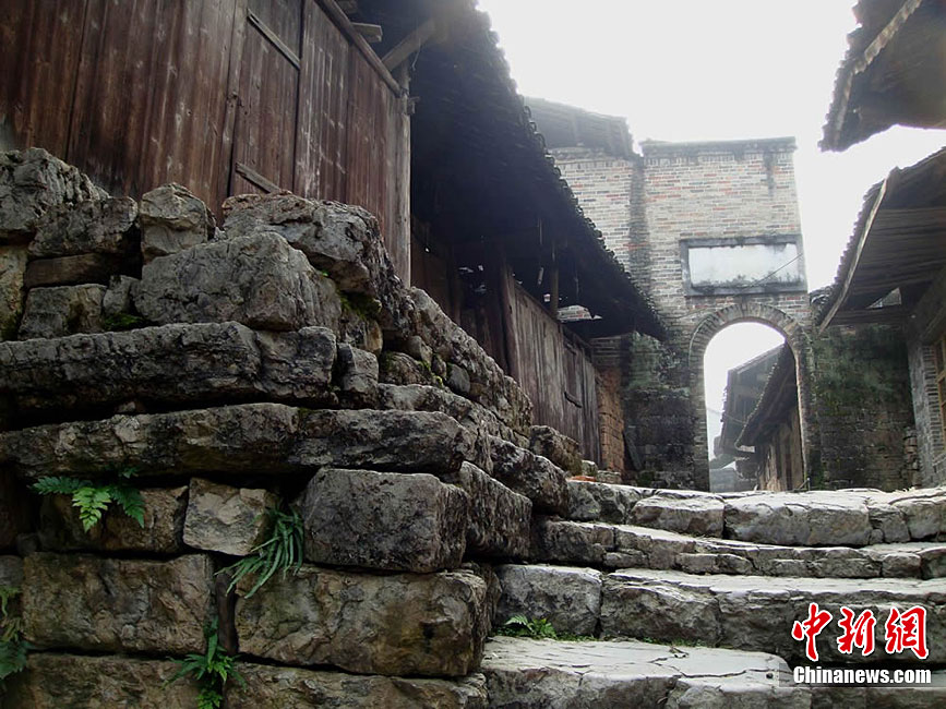 地處湘鄂渝交界處的湖南湘西自治州龍山縣賈市鄉(xiāng)是被譽(yù)為“原始戲劇的活化石”的茅古斯舞劇的發(fā)源地。這里是典型的土家族聚居地,居住環(huán)境原始古樸,至今保存完好的長達(dá)千余米的明清石板古街光滑剔透,沿街清一色木石結(jié)構(gòu)的明末清初古建筑群鱗次櫛比,極具民族特色。楊運(yùn)大 攝