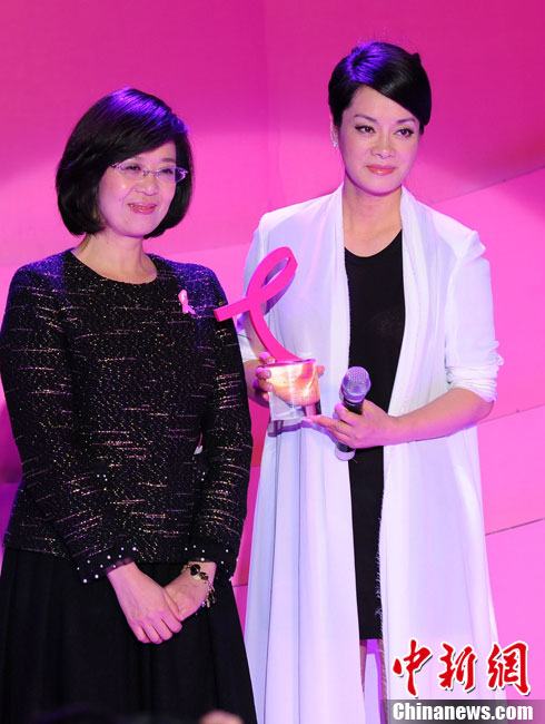 10月26日晚,《時(shí)尚健康》粉紅絲帶盛典在北京盛大舉行。歷屆粉紅絲帶代言人代表毛阿敏、柯藍(lán)與今年的代言人海清、張雨綺共同登上粉紅舞臺(tái),江映蓉、愛(ài)戴、葉蓓、翁虹、范志博、鞏新亮、孟倩、李鑫雨等眾星云集。目前,“粉紅絲帶乳腺癌防治運(yùn)動(dòng)” 已成為中國(guó)最具影響力的時(shí)尚公益活動(dòng)之一。圖為張雨綺、海青與眾嘉賓合影。中新社發(fā) 李學(xué)仕 攝