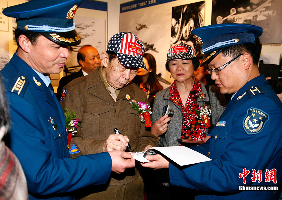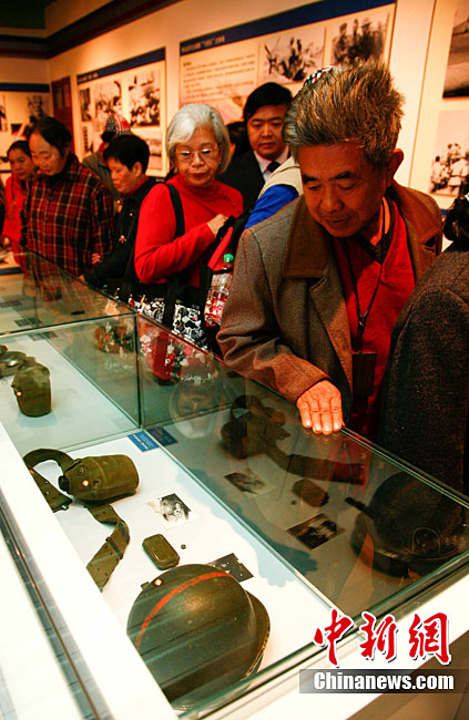11月9日,由知名僑領陳燦培向昆明市捐贈的1100件飛虎隊文物在云南陸軍講武堂展出。創立于上個世紀40年代的飛虎隊,又稱中國空軍美國志愿援華航空隊。在抗日戰爭中對日作戰,運送物資,戰果累累。圖為參觀展覽的空軍官兵。中新社記者 劉冉陽 攝