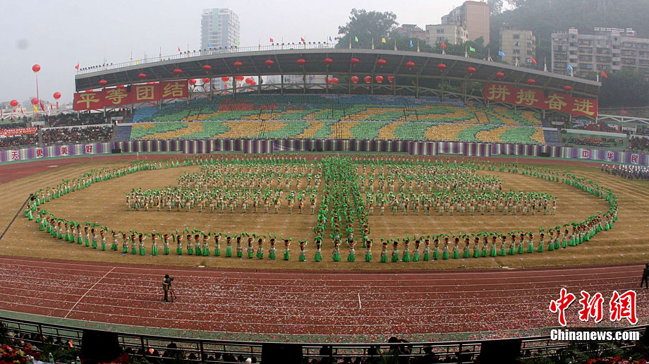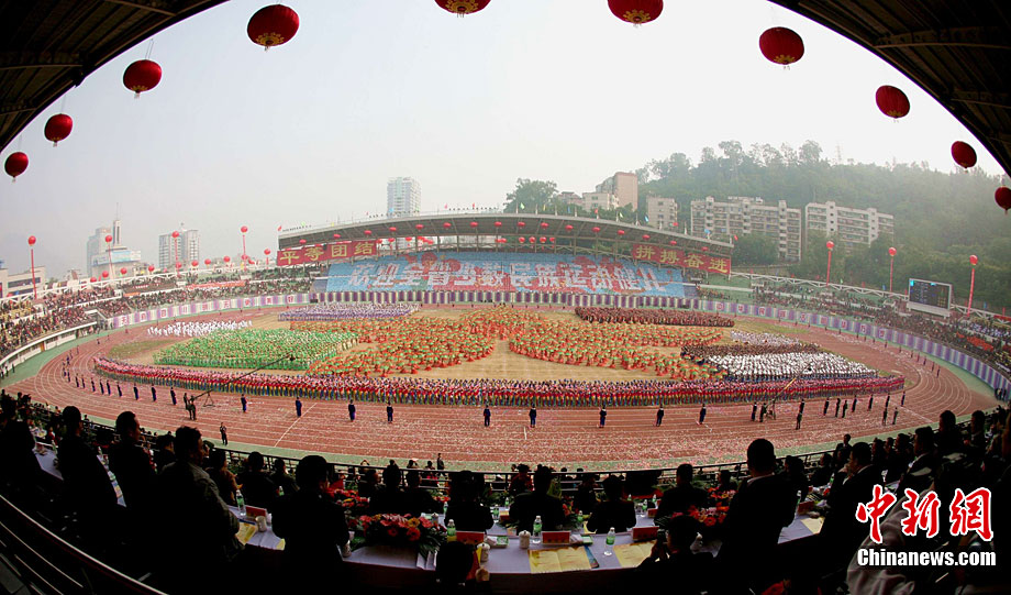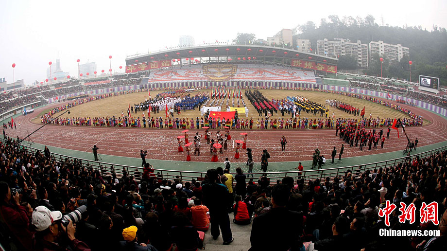 11月10日,四川省第13屆少數(shù)民族體育運動會在攀枝花拉開帷幕。來自涼山州、甘孜州、阿壩州、樂山市、雅安市等10個市州以及西南民族大學(xué)、成都體育學(xué)院共12支代表隊1066名運動員,將參加陀螺、民族式摔跤、田徑等9個競賽項目7天的比賽。本次運動會是四川歷屆少數(shù)民族運動會規(guī)模最大的一次,所有項目均可免費觀看。中新社發(fā) 劉忠俊 攝