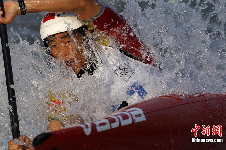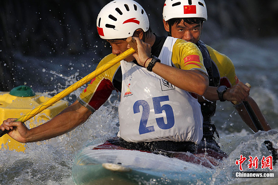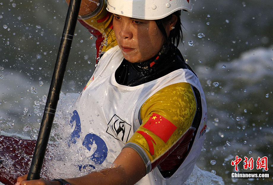 11月11日下午,中國隊女子單人選手在位于廣州市郊米崗的廣東國際劃船中心激流回旋賽道訓練,力爭金牌。中新社記者 任晨鳴 攝
