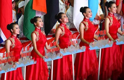 11月12日晚,第16屆亞運(yùn)會(huì)開幕式在廣州海心沙舉行。圖為開幕式軍樂隊(duì)風(fēng)采。中新社記者 陳文 攝