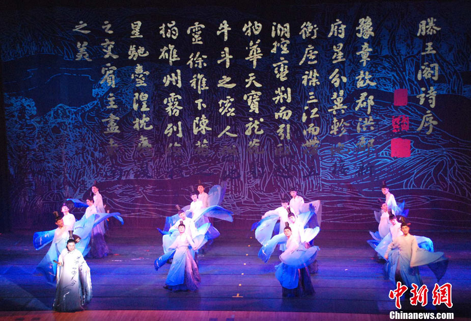 19日晚,演繹生態江西的大型風情歌舞《贛風》在江西藝術劇院正式上演。歌舞分風光篇、風情篇、風流篇、風采篇4個篇章,全面展現了贛鄱大地美麗風光與悠久歷史文化,成為宣傳江西的活名片。何柳斌 攝