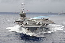 11月28日,韓美聯(lián)合軍事演習(xí)在黃海海域舉行。美軍派出“喬治·華盛頓”號航母、9600噸級巡洋艦及9750噸級驅(qū)逐艦參加演習(xí)。韓軍也投入7600噸級“世宗大王”艦、兩艘4500噸級驅(qū)逐艦以及巡邏艦、護航艦、戰(zhàn)斗支援艦和反潛飛機等參加演習(xí)。圖為11月17日,美國“喬治·華頓頓”號航母在日本沖繩附近演習(xí)。