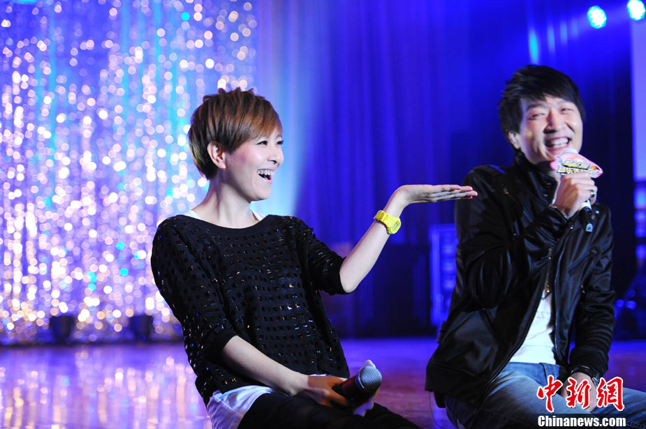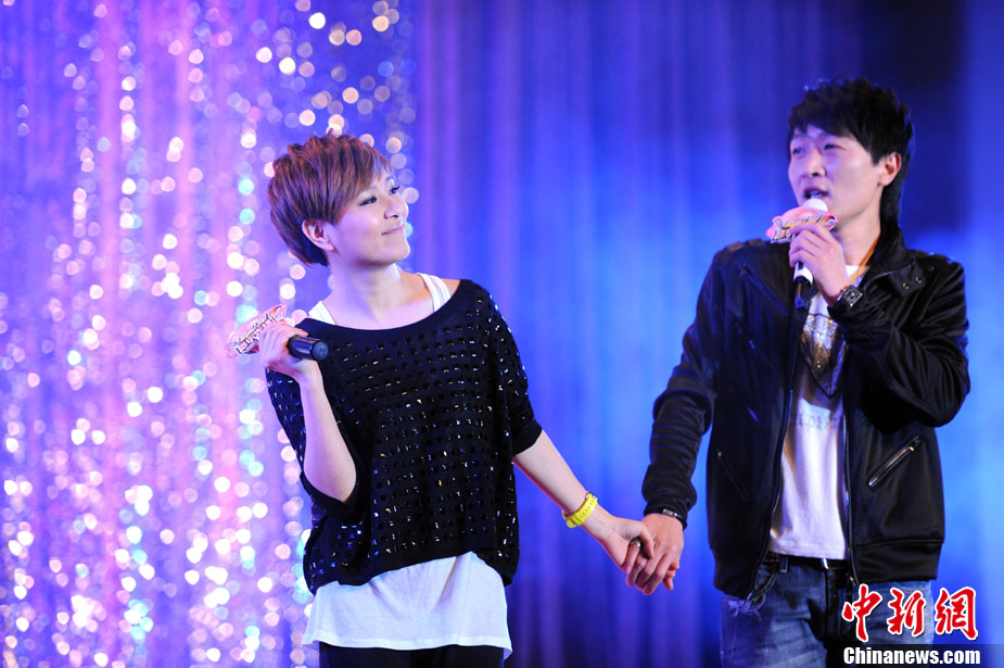 11月29日晚,2010公益進校園暨北京校園音樂演出季活動之李慧珍&樊凡主題歌友會在北京化工大學舉行,兩位歌手為歌迷們獻上了一首首經典的曲目。因演唱熱播電視劇《蝸居》主題曲爆紅的樊凡還親自譜曲了情歌《只需要一首歌》,并與李慧珍牽手甜蜜合唱,F場,積極投身愛心公益事業的樊凡和李慧珍還為貧困學生頒發了“媽媽的年夜飯”善款,并雙雙被北京婦女兒童基金會聘為“愛心大使”。圖為李慧珍、樊凡牽手獻唱。中新社記者 李學仕 攝
