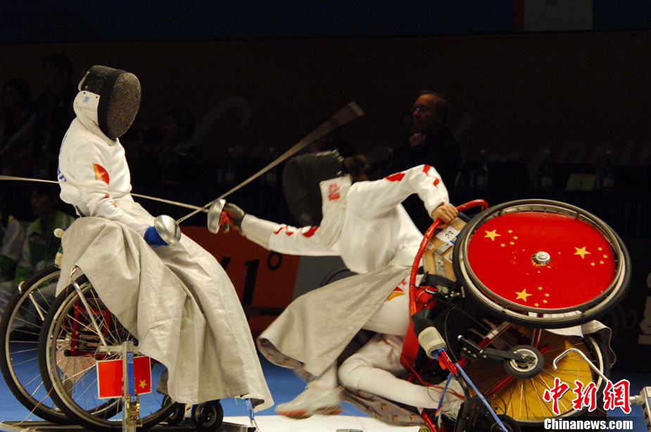 12月15日,志愿者雨天為運動員撐傘護航,無微不至。廣州2010亞殘運會,輪椅網球比賽在廣州天河體育中心網球學校舉行,因雨比賽從室外轉向室內。尹雪峰 攝