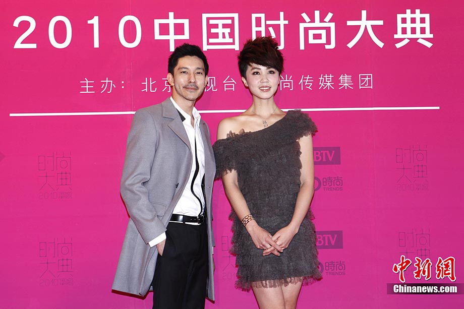 12月22日晚,由北京電視臺和時尚傳媒集團聯合主辦的2010中國時尚大典在北京精彩上演。張藝謀、黃曉明、何潤東、立威廉、翁虹、秦嵐、張靚穎、愛戴、阿朵等眾星云集讓現場星光熠熠。2010時尚大典以“時尚改變生活”為主題,精心設計并頒布了覆蓋時尚生活和時尚工業全局的18個大獎。藝術家葉錦添領軍16位中國新銳時裝設計師打造明星與名師的“跨界”時尚秀場。大典精彩鉅獻了一場集震撼視覺表達和時尚魅力呈現的饕餮盛宴。圖為阿朵和“筷子兄弟”組合,阿朵的黑色緊身衣和鹿角發型十分搶鏡。中新社記者 李學仕 攝