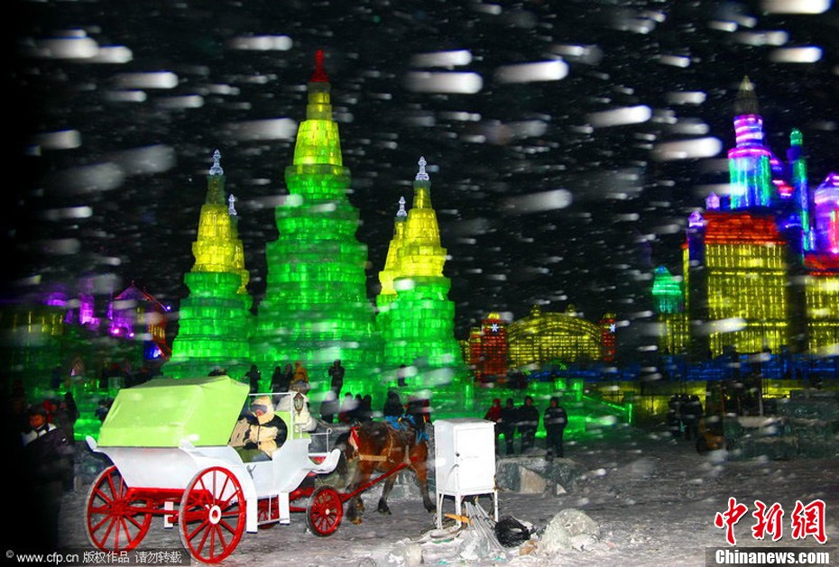 2010年12月25日,哈爾濱,第十二屆哈爾濱冰雪大世界試開園,首日迎接中外游客2萬(wàn)余人。圖片來(lái)源:CFP/視覺中國(guó)