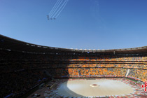 6月11日,南非世界杯揭幕戰(zhàn)打響,東道主南非隊(duì)迎來(lái)了小組賽首個(gè)對(duì)手、中北美勁旅墨西哥隊(duì),最終經(jīng)過(guò)90分鐘鏖戰(zhàn),兩隊(duì)在下半場(chǎng)各自攻入一個(gè)精彩進(jìn)球,雙方1:1握手言和。