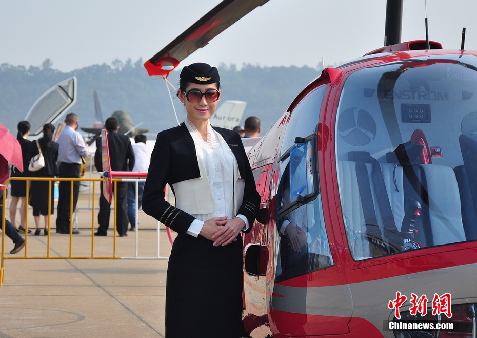 每一屆珠海航展都會(huì)有許多佳麗現(xiàn)身,而這次航展上的直升機(jī)模特更是讓觀眾大飽眼福。中新網(wǎng)記者 陳海峰 攝