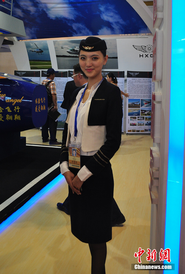 每一屆珠海航展都會有許多佳麗現身,而這次航展上的直升機模特更是讓觀眾大飽眼福。中新網記者 陳海峰 攝