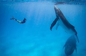 潛水模特與鯨魚深海“共舞”