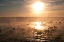 天鵝“泡湯”畫面唯美