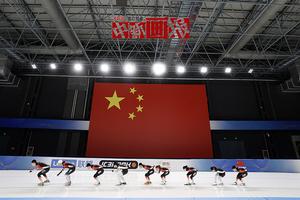 1月29日,北京,中國隊(duì)隊(duì)員在訓(xùn)練中。當(dāng)日,中國速度滑冰隊(duì)在國家速滑館“冰絲帶”進(jìn)行訓(xùn)練,備戰(zhàn)北京冬奧會比賽。 中新社記者 何蓬磊 攝