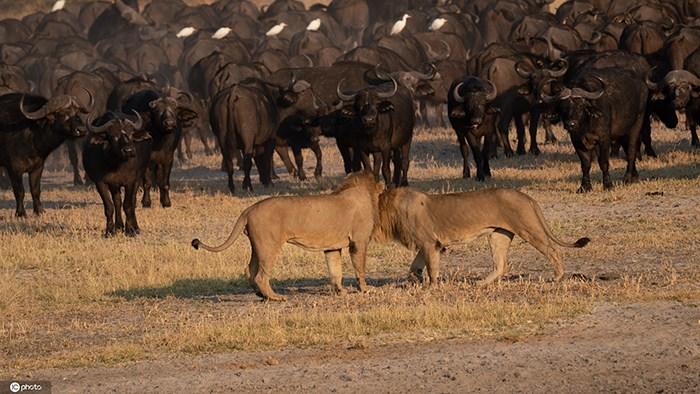 非洲牛群擊退獅子